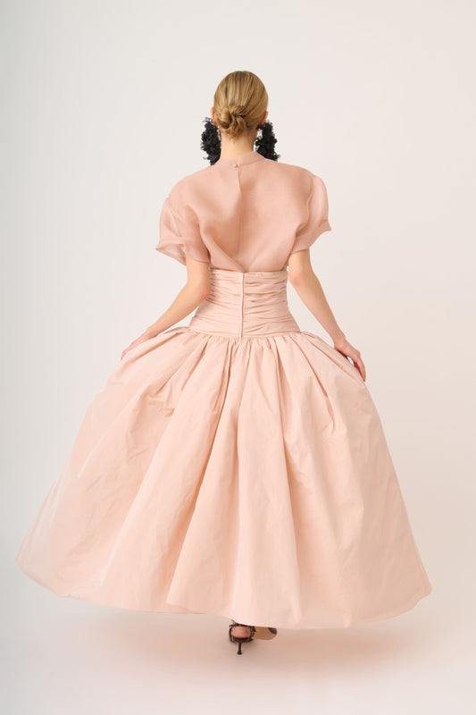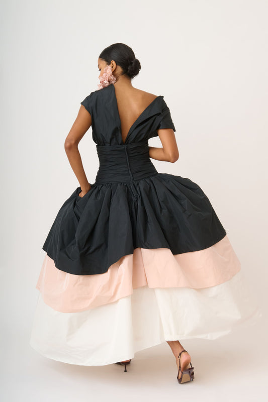 Falda midi de tafetán de cintura alta con paneles asimétricos
