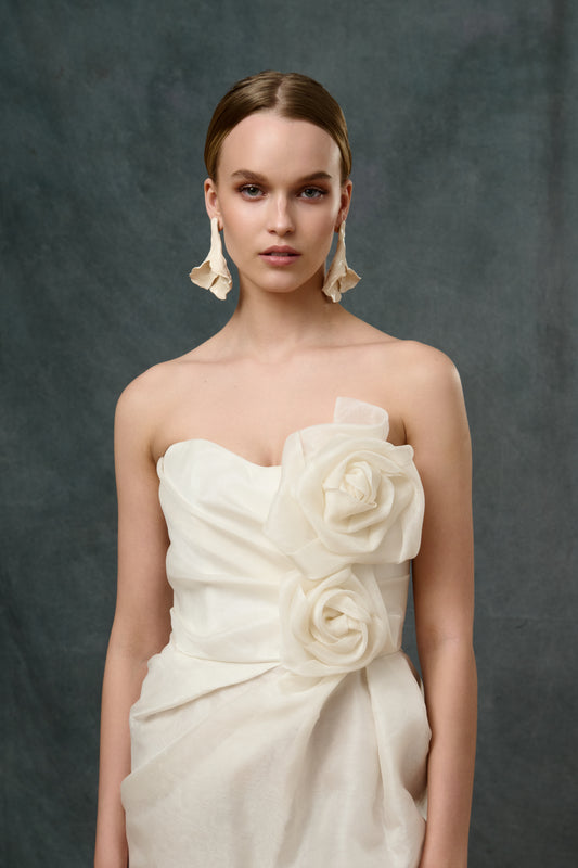 Inspirado en la efervescencia y versatilidad de esta temporada, "ABRIL" es un tributo a la belleza multidimensional y siempre cambiante de la primavera. Cada vestido de la colección "ABRIL" es una oda a los elementos más cautivadores de la primavera.