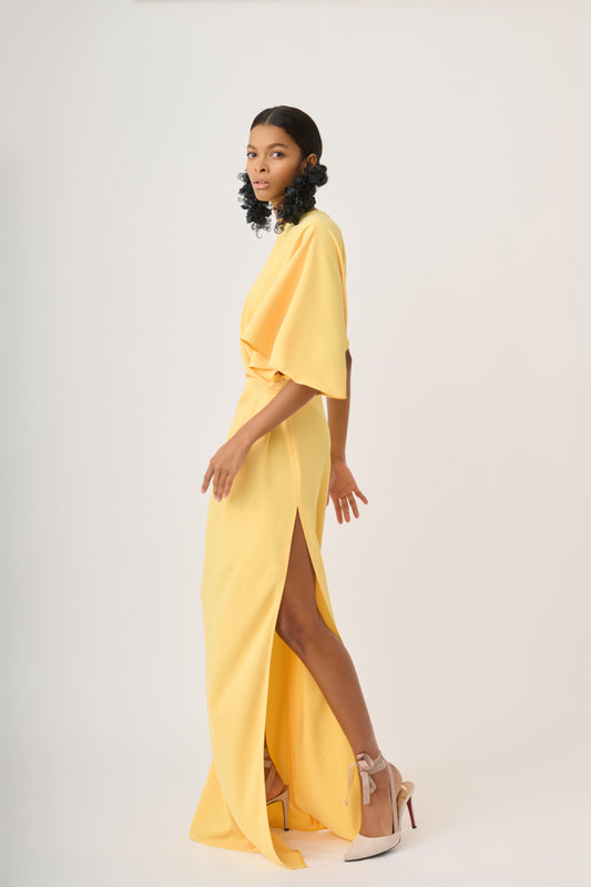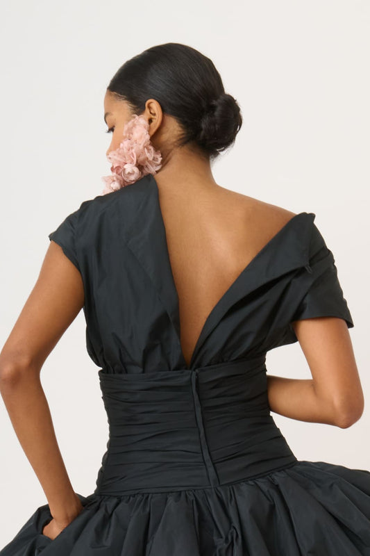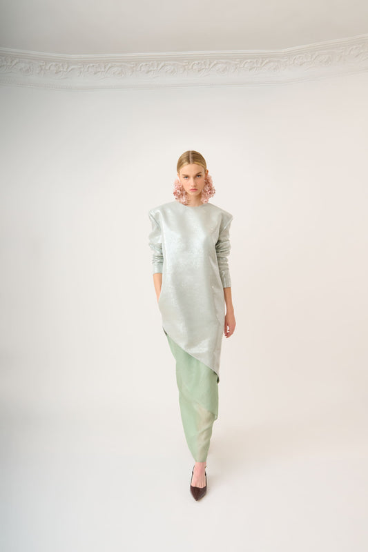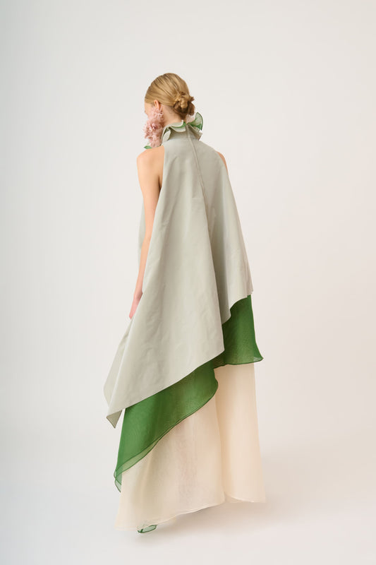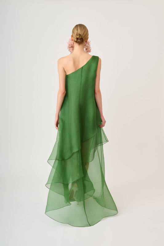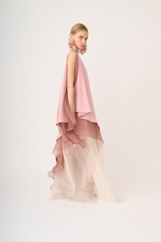 Falda larga asimétrica de organza de seda con cintura drapeada