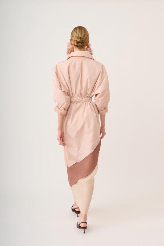 Falda midi de tafetán de cintura alta con paneles asimétricos