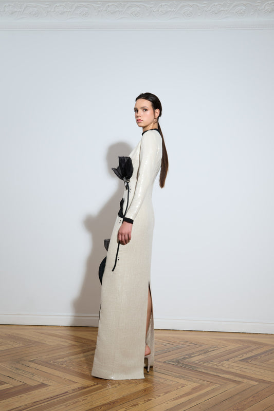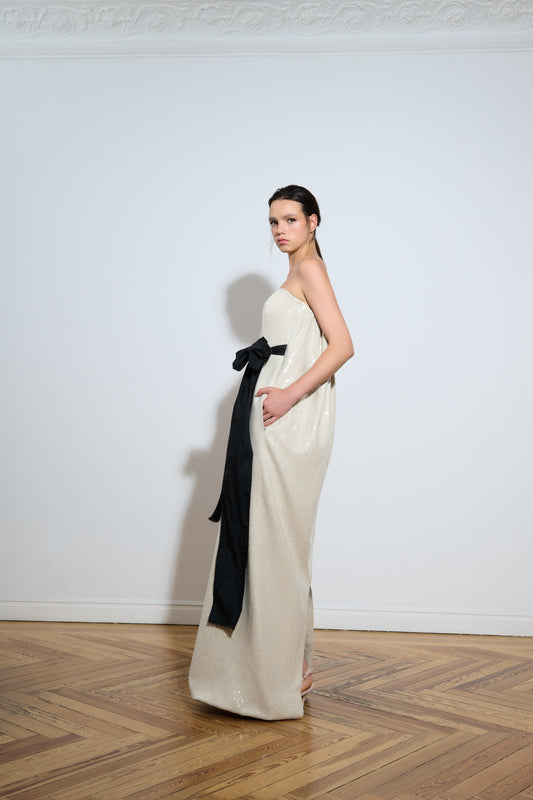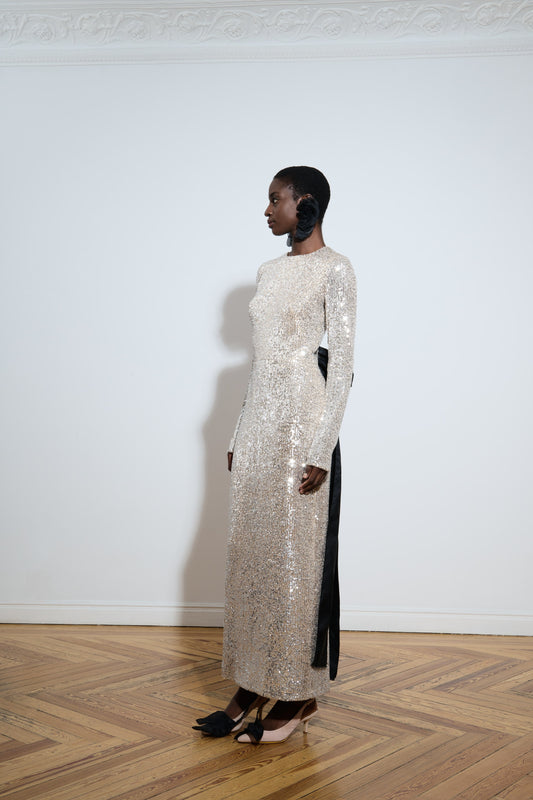 Vestido largo de lentejuelas con lazos