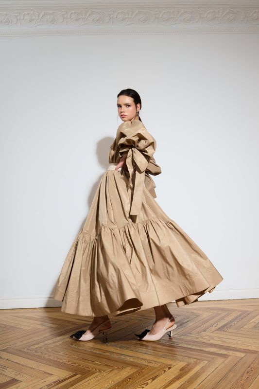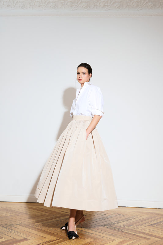 Camisa de popelin y falda plisada de tafetán