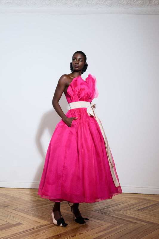 Vestido midi de organza con cristales