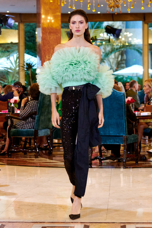 Embroidered tulle top